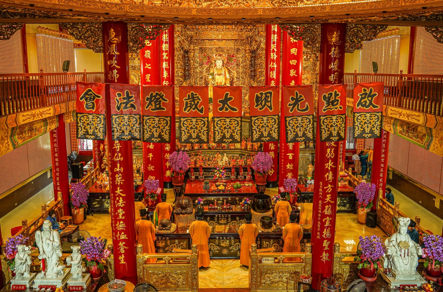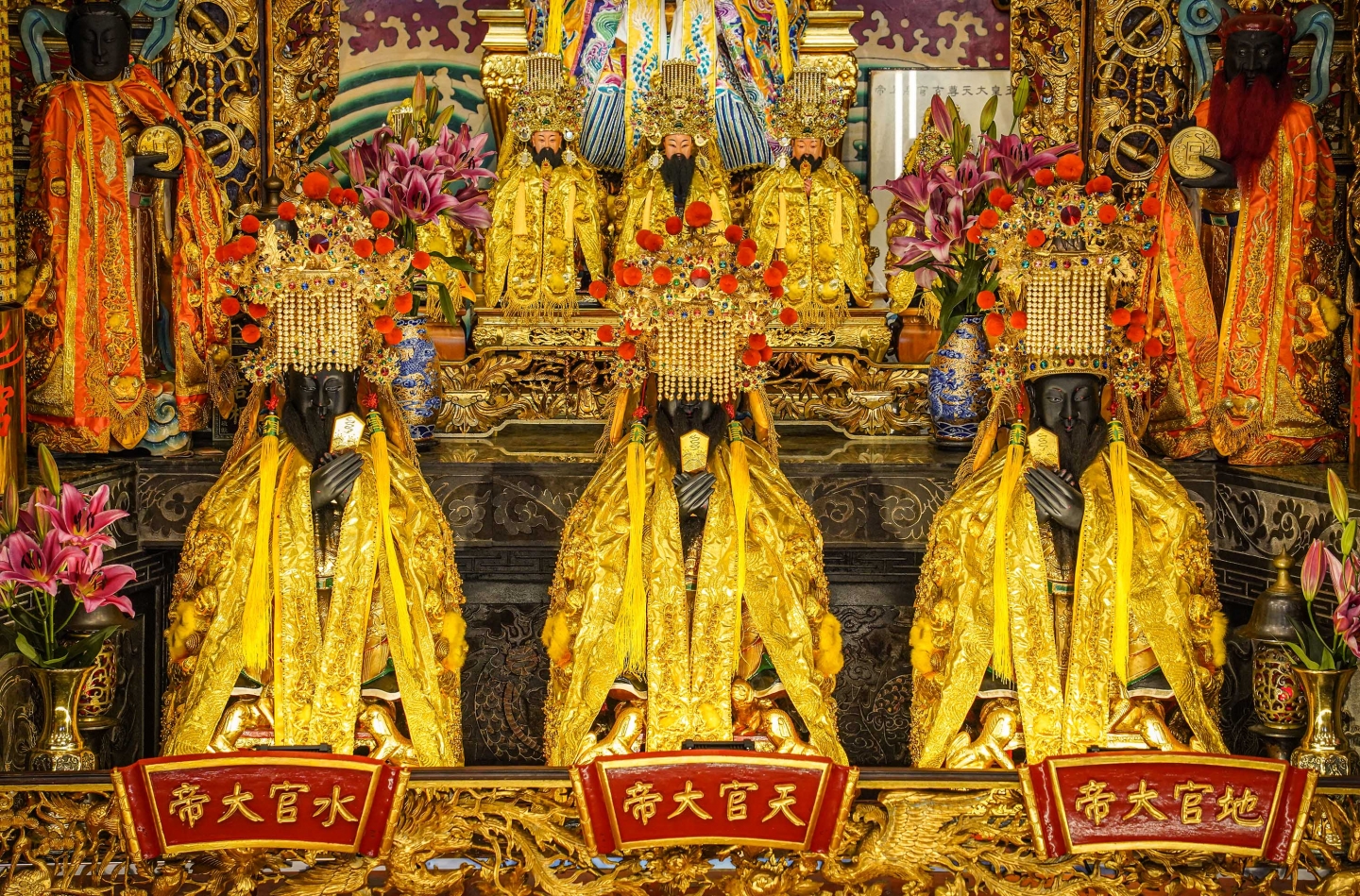 三樓主祀金身金面的玉皇上帝,富麗堂皇