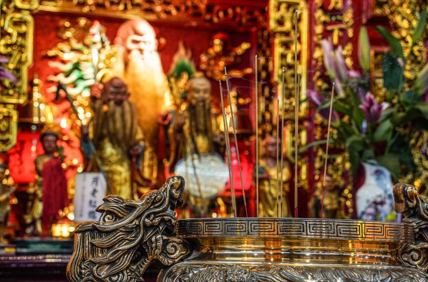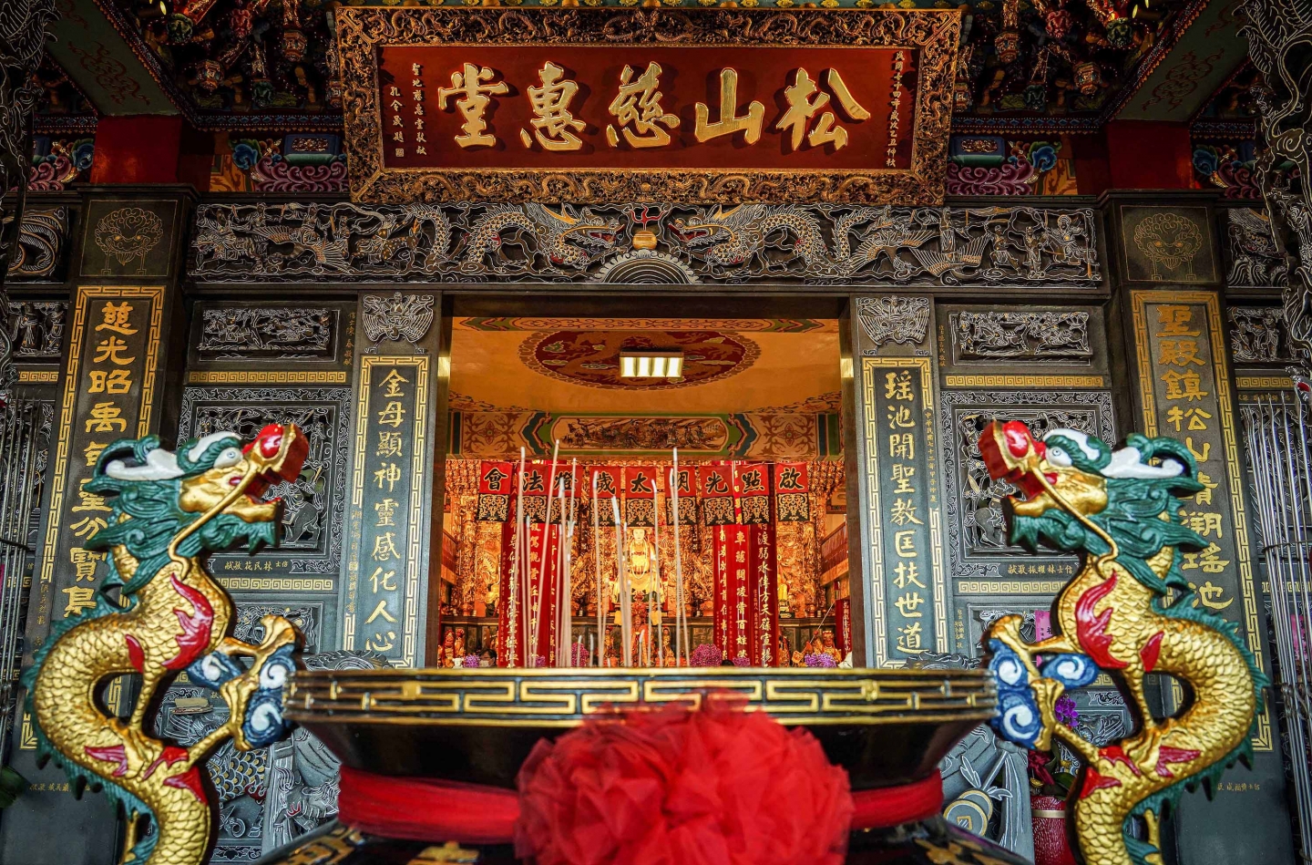 松山霞海城隍廟坐落於松山區的街角,主祀城隍爺,也奉祀月老,一樓更有五路財神,吸引許多求姻緣者、商人與各方信徒前來參拜。據說,早年夜市攤販白天歇業時,常見店家主人到廟裡添油錢,祈願生意興隆。 松山霞海城隍廟鄰近饒河街夜市一帶,雖沒有大廟的華麗氣派,卻有著動人質樸的氣息,更是信仰與貿易環境的結合。偶爾有人在廟裡遇見老街坊,坐在凳上說著從前的故事,哪家孩子考上大學,哪家攤位升級店面,都要來城隍爺面前上炷香。 松山霞海城隍廟展現臺北城市的多面性,也讓居民與旅客在繁忙間找到一處祈願的歸所。