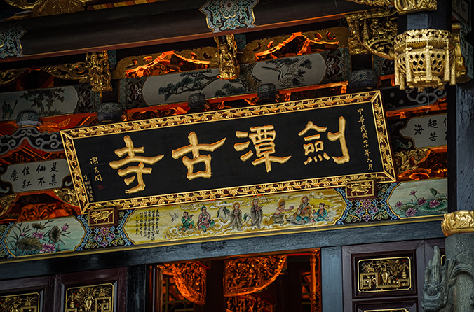 The plaque of Jiantan Temple was inscribed by then Vice President Hsieh Tung-min.Stepping into Jiantan Temple feels like turning the pages of history—its classical ambiance offering an immediate escape from the city's hustle. Believed to have been founded during the Guangxu reign of the Qing Dynasty, the temple retains the refined craftsmanship of traditional artisans. Nestled at the foot of a mountain in Zhongshan District, it overlooks the Taipei Basin and harmonizes with the surrounding forests and misty air.