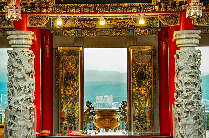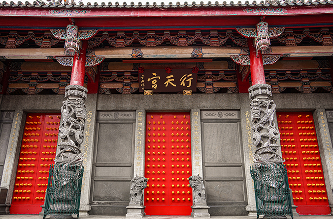 正殿廟門上有108個門釘,象徵36天罡星、72地煞星守護
