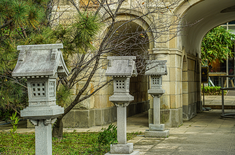 鐘樓前典雅石燈籠讓人彷彿置入異國氛圍