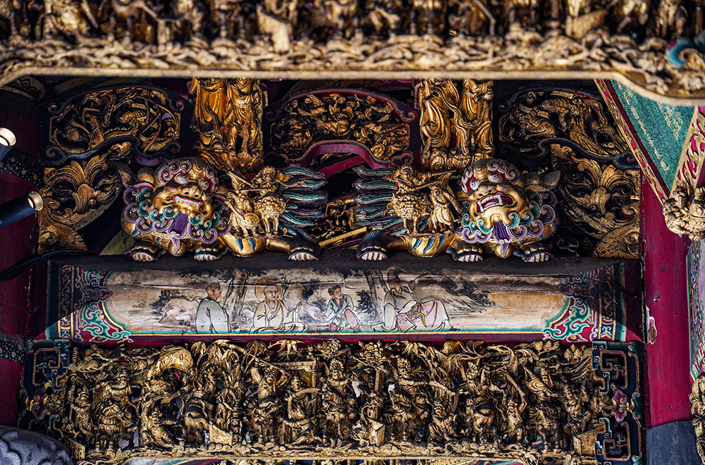 藻井由獅座將藻井抬起,塑造出華麗莊嚴的信仰空間