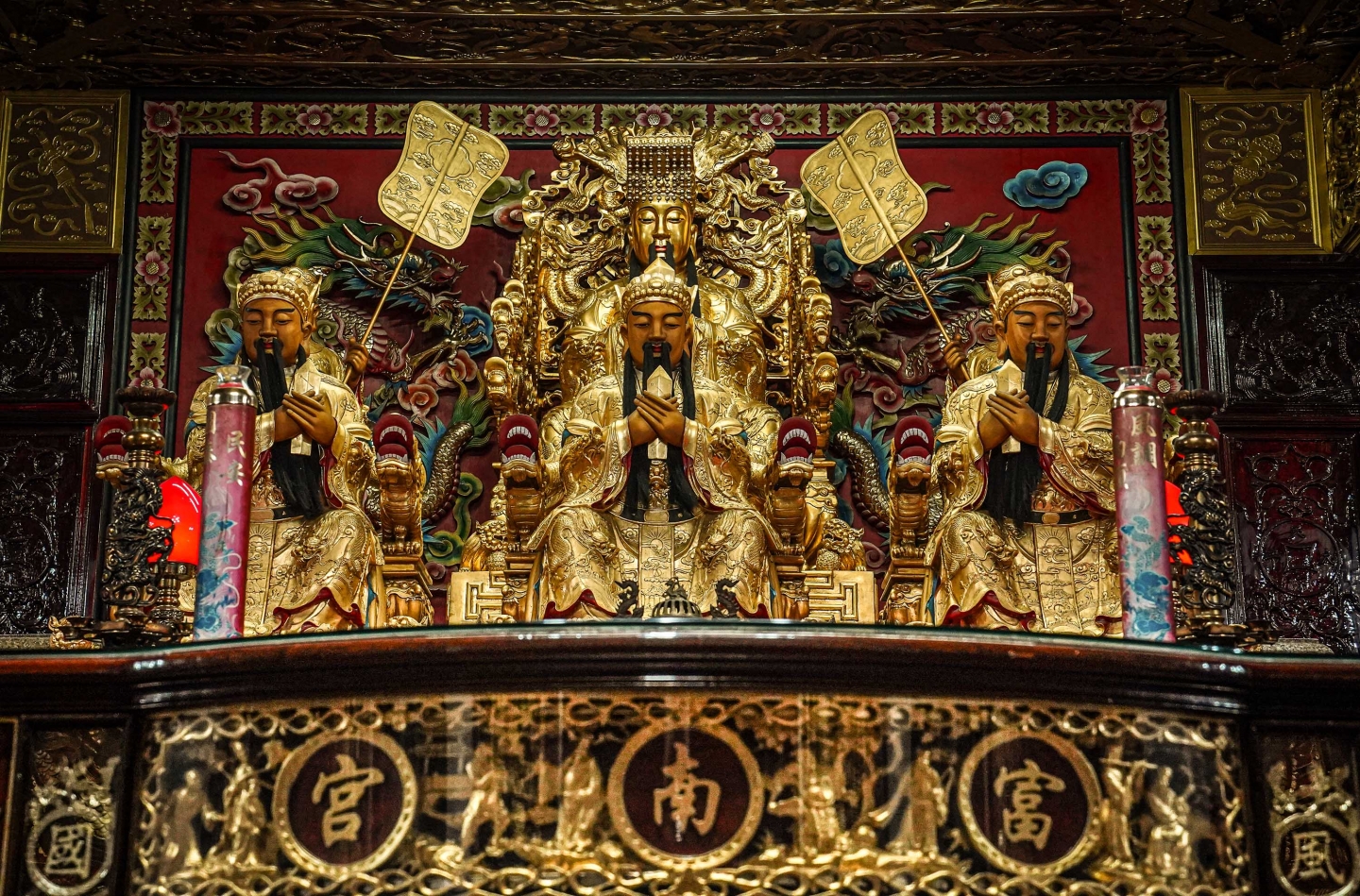 三樓主祀金身金面的玉皇上帝,富麗堂皇
