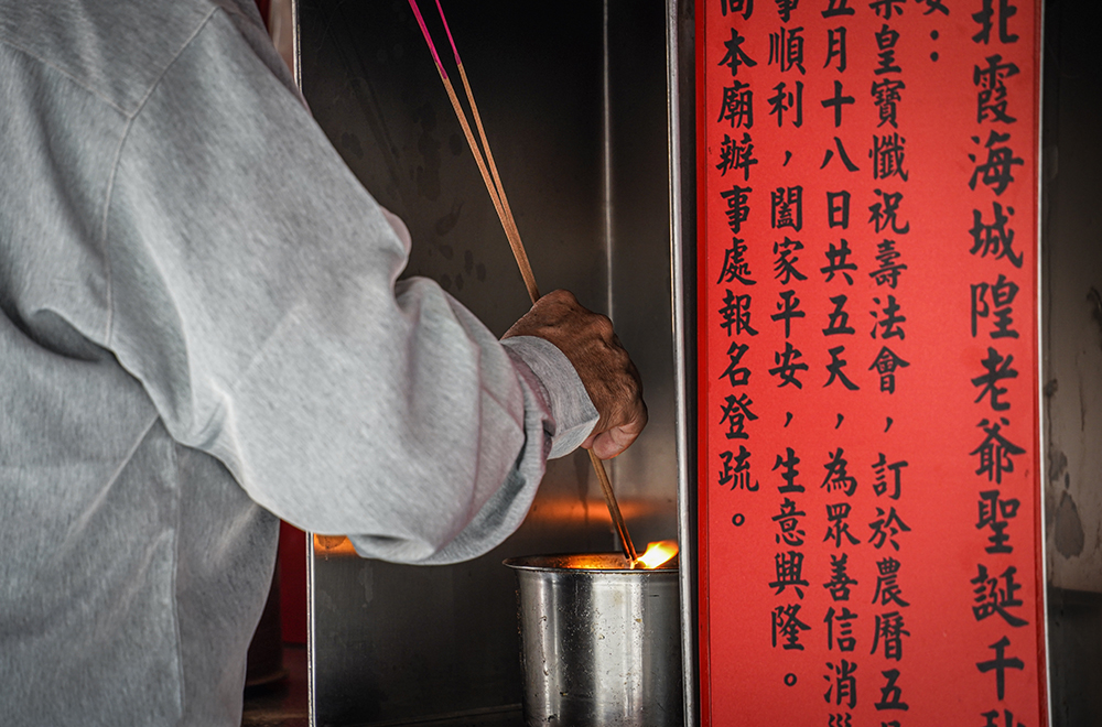台北霞海城隍廟廟口就是迪化街,終日人聲鼎沸