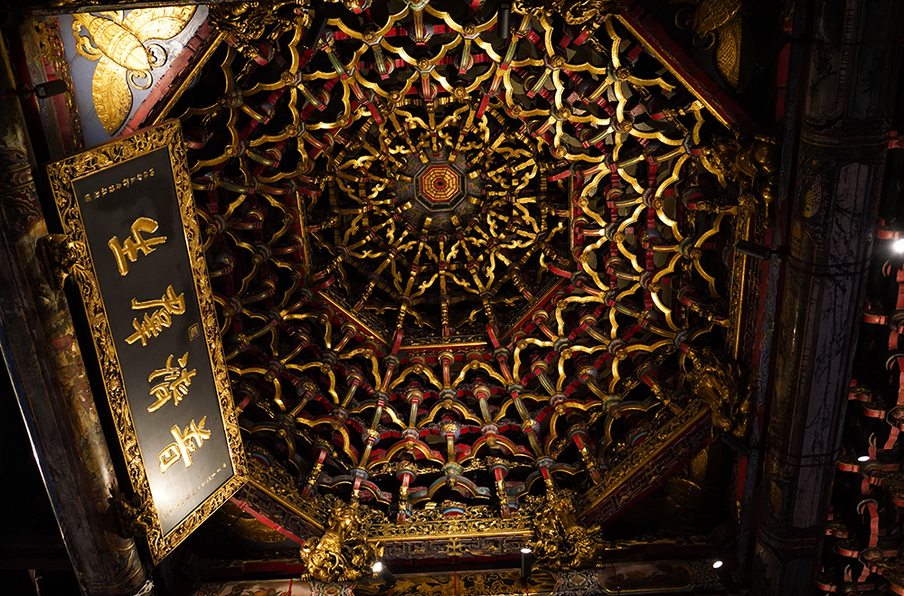 藻井由獅座將藻井抬起,塑造出華麗莊嚴的信仰空間