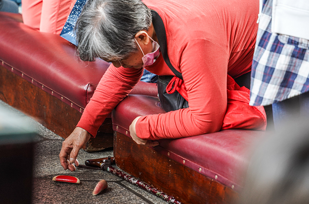 龍山寺佛桌神案前擲筊請示的信徒絡繹不絕