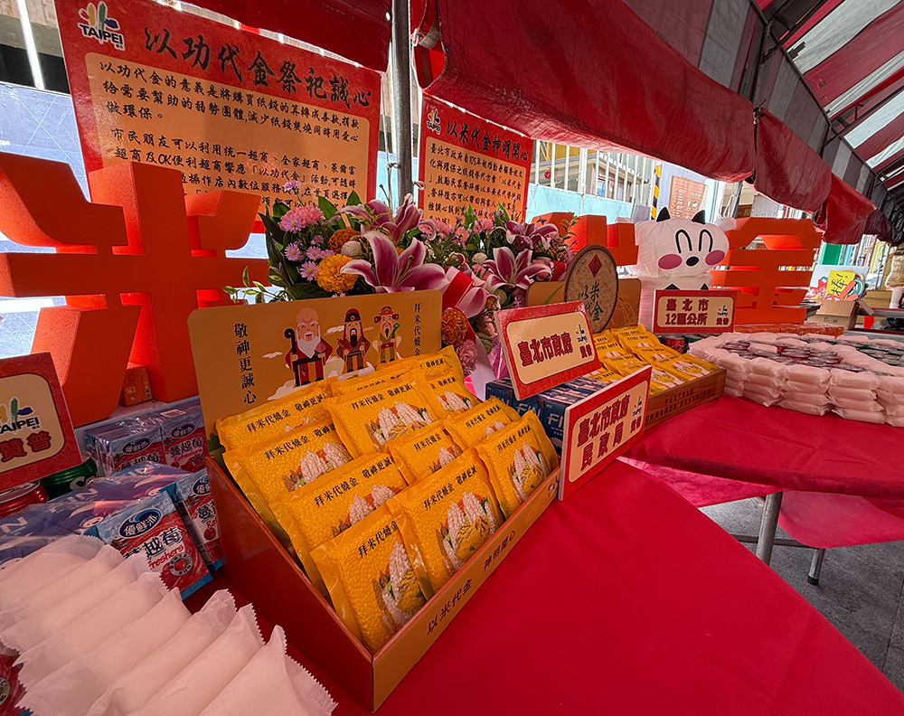 臺灣省城隍廟長年響應市府環保祭祀,長期推廣金銀紙錢集中焚燒及「以米代金」,為臺北市推廣環保祭祀的指標性寺廟,近年普度祈安祭典上,除了藉由環保及莊嚴之祭拜儀式,推動禮俗文化革新,並宣導香枝紙錢減量、集中焚燒及「以米代金」,展現出「以米代金」與傳統科儀的融合,鼓勵民眾祭拜回歸誠心,減少焚燒紙錢,此外也將參與線上普度民眾名單敬呈城隍爺,由法師為參與線上普度的民眾祈福,各區民俗委員會也特別響應「以功代金」,將紙錢、供品轉化為善款,捐款幫助需要的弱勢團體,祈福同時也環保愛地球並幫助弱勢。